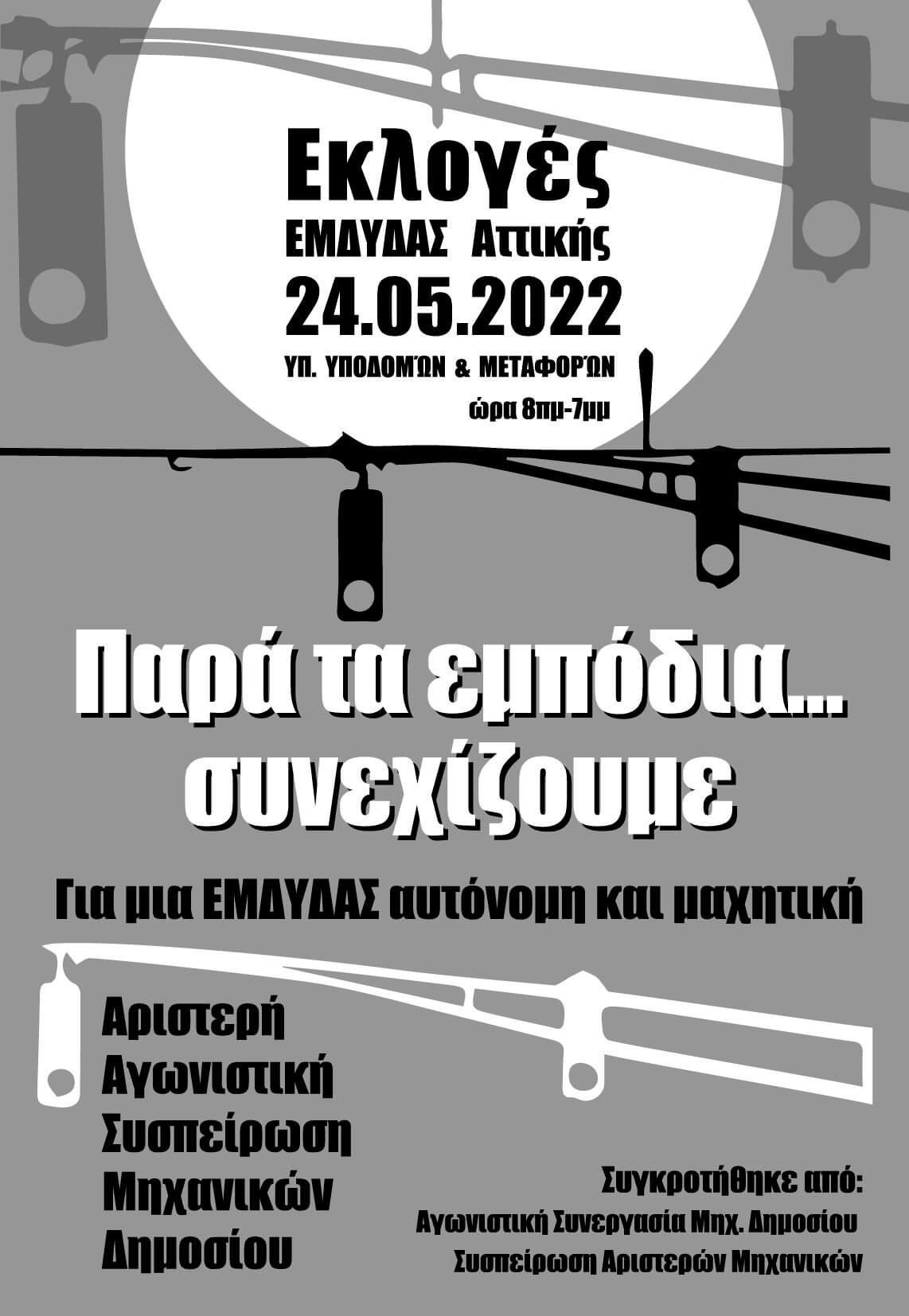 Αφίσα της Αριστερής Αγωνιστικής Συσπείρωσης Μηχανικών Δημοσίου / Ενωτική Αγωνιστική Συσπείρωση, Παρατάξεις / 19/05/2022 Αφίσα της Αριστερής Αγωνιστικής Συσπείρωσης Μηχανικών Δημοσίου .jpg