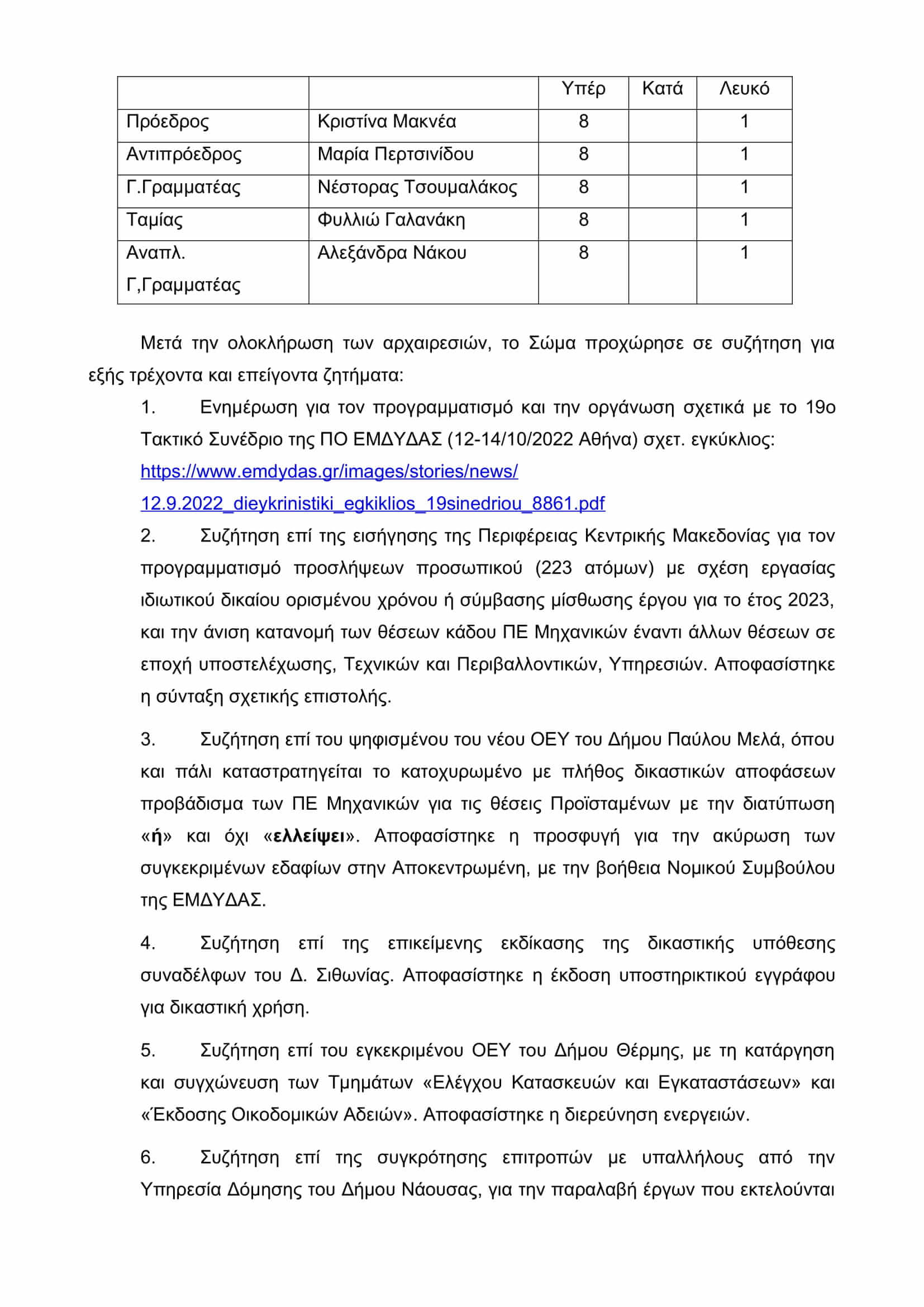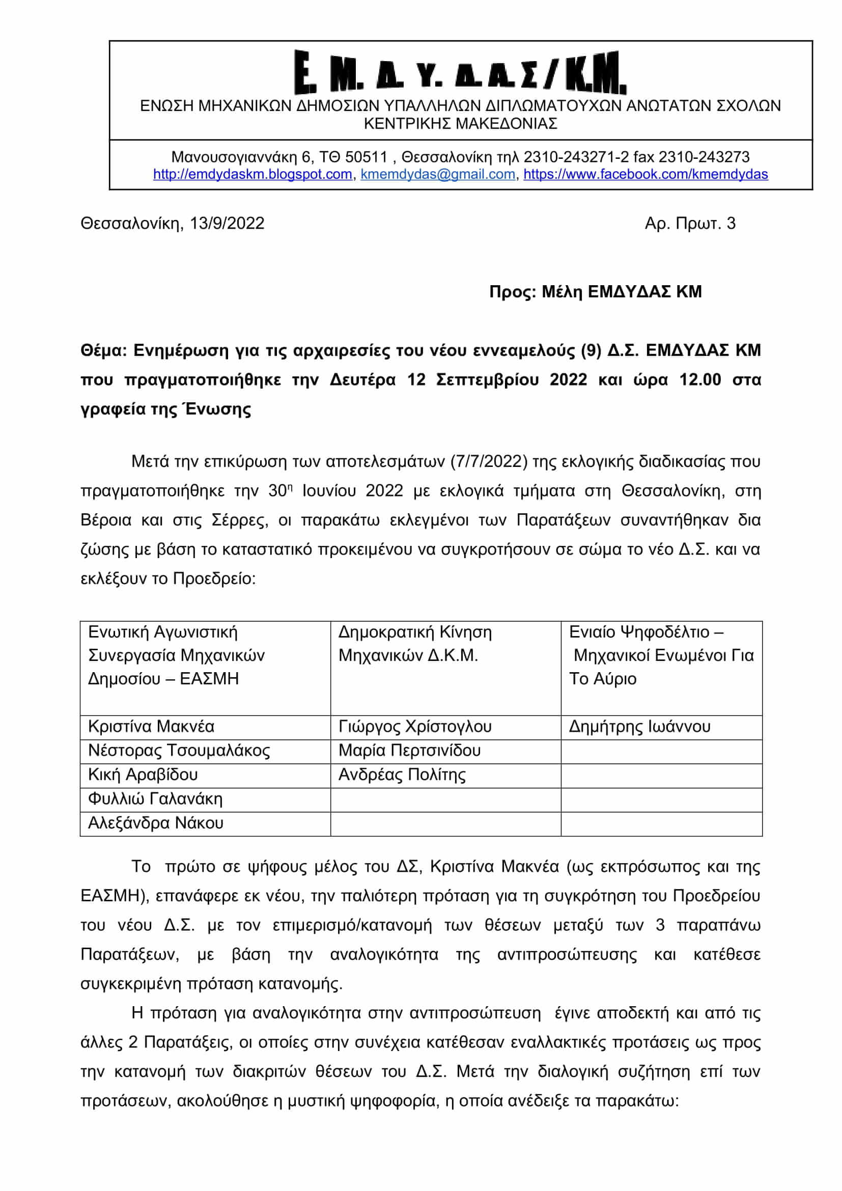 Ενημέρωση για τις αρχαιρεσίες του νέου εννεαμελούς (9) ΔΣ ΕΜΔΥΔΑΣ Κ/Μ που πραγματοποιήθηκε τη Δευτέρα 12 Σεπτεμβρίου 2022 και ώρα 12.00 στα γραφεία της Ένωσης